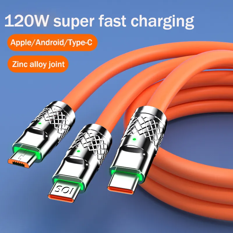 Upgrade your charging experience with the 120W Super Fast Charge Liquid Silicone 3-in-1 Cable and enjoy unmatched convenience and efficiency!